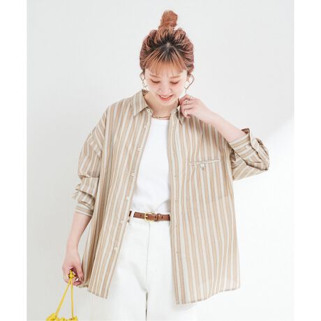 カラーによってストライプ柄を変えた柔らかなカラーのやや透け感のある生地なので、いつものシャツコーデも目新しさがでておすすめです。