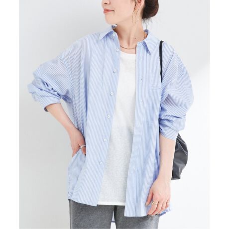 カラーによってストライプ柄を変えた柔らかなカラーのやや透け感のある生地なので、いつものシャツコーデも目新しさがでておすすめです。