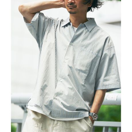 今シーズン、長袖シャツでも好評頂いた『JAMES FABRIC』を使用した清涼感のあるストライプシャツが登場。