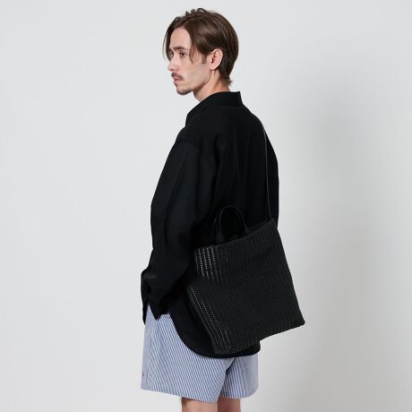 “男性が持てるかごバッグ”をテーマに仕上げた2wayバッグ。