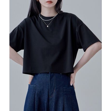 身幅はゆったりとしたサイジングながらもコンパクトなクロップド丈は、ハイウエストやボリュームのあるボトムスを合わせるとスタイルUPも◎。
