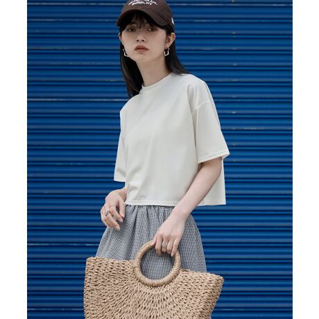 身幅はゆったりとしたサイジングながらもコンパクトなクロップド丈は、ハイウエストやボリュームのあるボトムスを合わせるとスタイルUPも◎。