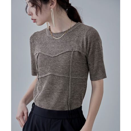 レイヤードせずともこなれ感をプラスしてくれるビスチェ風のリブニット。
