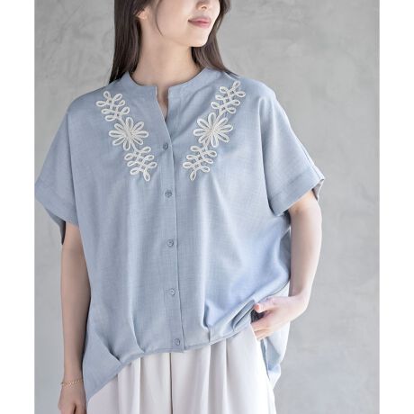 霜降りの風合いが優しい表情を作るシャンブレー素材のブラウス。