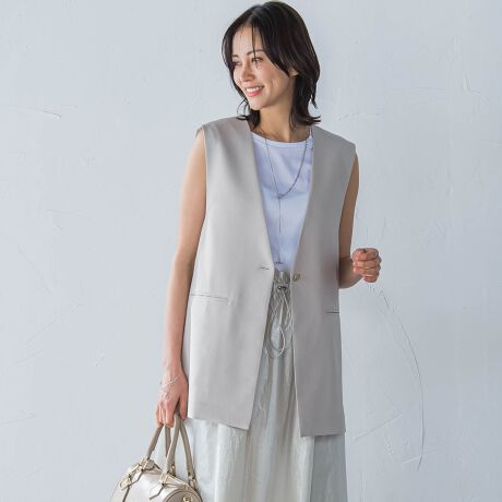 関連ワード:LAUTREAMONT ロートレアモン レディース きれいめカジュアル 大人カジュアル ナチュラル きれいめ キレイめ 上品 シンプル ベーシック 通勤スタイル オフィスカジュアル キャリア オフィススタイル 新作 2025春夏 2025SS 春夏 夏物 夏服 合成繊維/ポリエステル ジレ Vカラー リネンライク