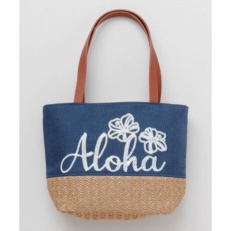 [型番:42QP5201-2025]Alohaの文字をスパンコール刺しゅうで表現した爽やかなデザインのミニトートバッグ。軽やかで持ち運びしやすく、デイリーに使いやすいサイズ感です。