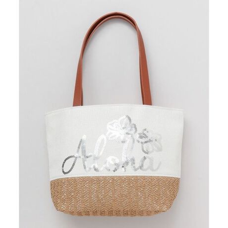 [型番:42QP5201-2025]Alohaの文字をスパンコール刺しゅうで表現した爽やかなデザインのミニトートバッグ。軽やかで持ち運びしやすく、デイリーに使いやすいサイズ感です。