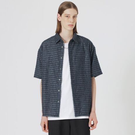 毛足の短いカットジャガード素材を使用したシアーハーフスリーブシャツ