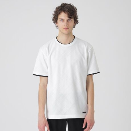 【シャドーチェック柄をあしらったフェイクレイヤードデザインのTシャツ】