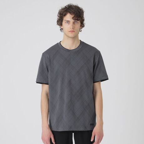 シャドーでクレストブリッジチェック柄を全面にあしらったTシャツ。衿部分と袖口にトーナルカラーのクレストブリッジチェック柄をレイヤード調にあしらう事で程良いデザインアクセントに。ジャケットのインナーとしても着回しやすい、キレイ目なデザインカットソーに仕上げています。