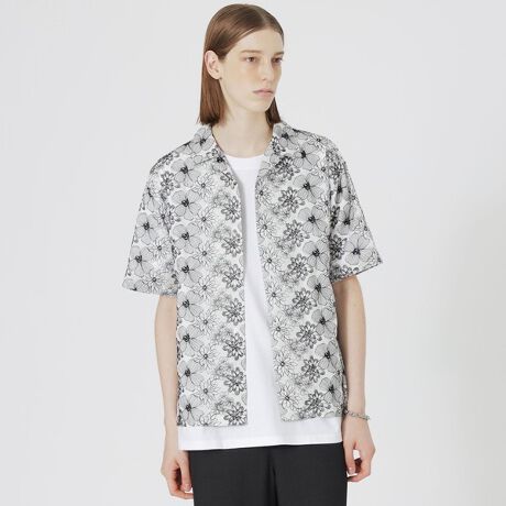 全面に施されたフラワー刺繍が目を引くオープンカラーショートスリーブシャツ