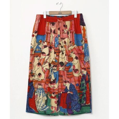 着るNIPPON ART 浮世絵をリデザインしたステテコ。刺し子のようなテクスチャ感のある着心地の良い綿素材。大胆な柄のお洒落さと穿きやすさを兼ね備え、普段着としてはもちろん、部屋着などのリラックスウェアとしても着られるパンツです。
