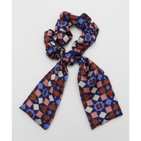 [型番:LJPZ5201-2025]さらっとなめらかな生地感のイタリア製スカーフで作られたシュシュ。腕に着けてもかわいく、手首を締め付けないサイズ感。モダンな柄がヘアアレンジを華やかにしてくれます。