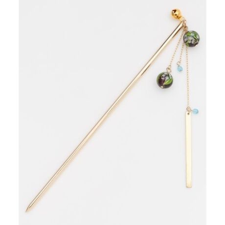 [型番:7PZZ5202-2025]和柄のビーズとメタリックパーツを使用したかんざし。扱いやすい太さの軸で、髪の毛をしっかりとまとめることが出来ます。シンプルながらもしっかりとした存在感があり、様々なシーンやコーディネートに合わせられます。