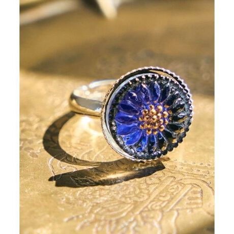 色とりどりの繊細なデザインが愛らしいチェコ・ボヘミア地方のガラスボタンリング。現地の工房では昔ながらの手作業でひとつひとつ丁寧につくられています。そんな魅力あふれるガラスボタンを現地から直接仕入れ、素敵なリングに仕立てました。レトロな雰囲気が印象的。ひとつひとつ微妙な違いがあり、手作りならではの味わいをお楽しみいただけます。リングサイズの調整が可能です。