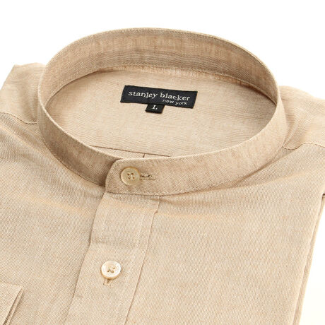 【stanley blacker】【長袖】バンドカラーシャツ ベージュ リネンブレンド