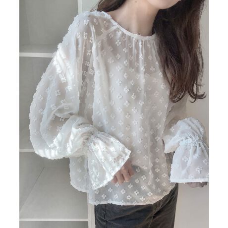 フラワージャガードリボンシアーブラウス