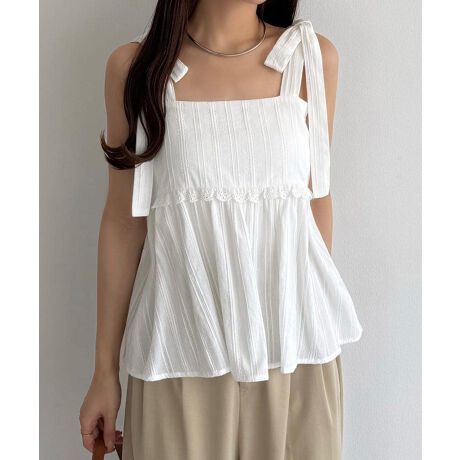 callautia 肩リボンコットンレースキャミソール