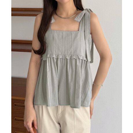 callautia 肩リボンコットンレースキャミソール
