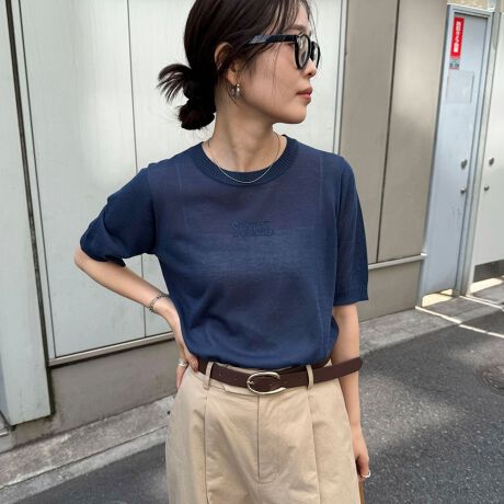 ・夏でも着用できるサラッと軽いニット素材にワンポイントの刺繍が映える1着