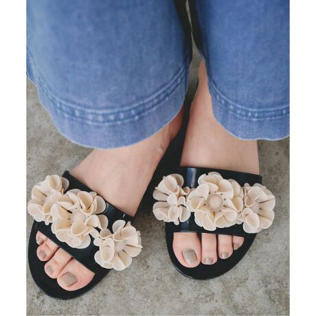 お花モチーフが目を引く可愛いサンダル。