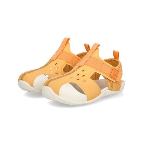 つま先をガードするデザインで、小さく柔らかなお子さまの足を、衝撃や石、破片などから守る保護性を高めた設計◎