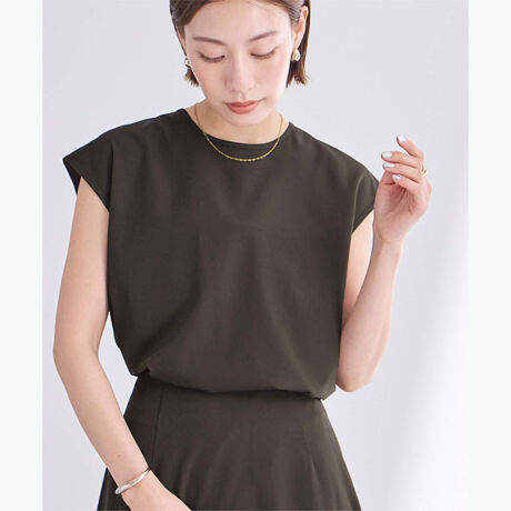 フレンチスリーブが涼し気で気になる二の腕をカバーできます。