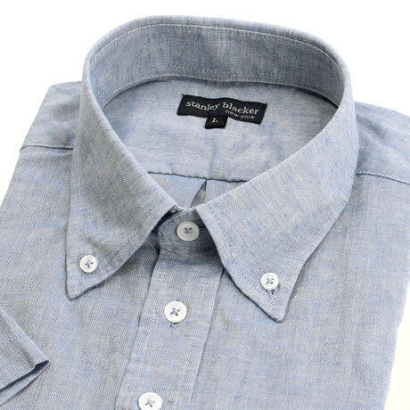 【stanley blacker】【半袖】リネンブレンドボタンダウンシャツ 無地 ライトネイビー