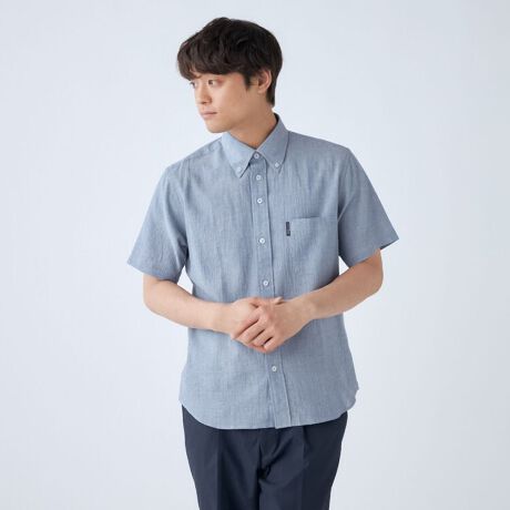 【stanley blacker】【半袖】リネンブレンドボタンダウンシャツ 無地 ライトネイビー