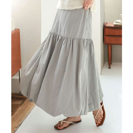 ボリューム感を持たせつつウエスト周りはすっきりと見えるシルエットで、バルーンでも着膨れしにくく体型カバー効果も。