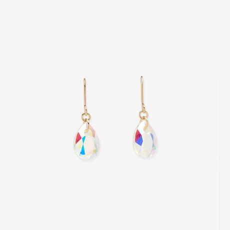 まるで雫のような透明感のクリスタルガラスが繊細に輝くイエローゴールドのフックピアス。