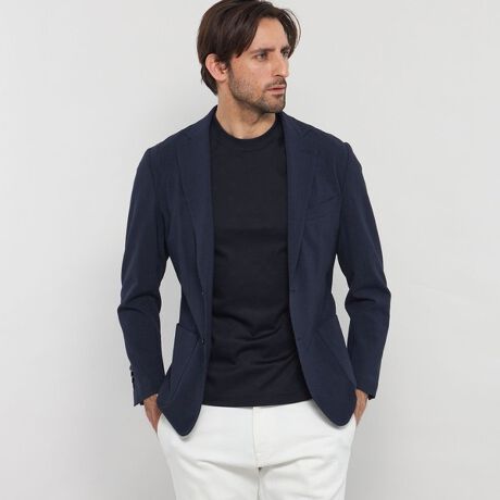 見返しは細く、袖裏なども排した軽快な仕立てを意識した盛夏仕様のジャケットです。