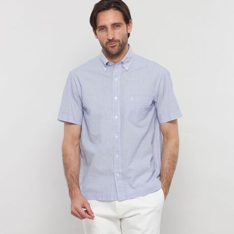 【WEB・一部店舗限定】シアサッカーストライプ半袖ボタンダウンシャツ