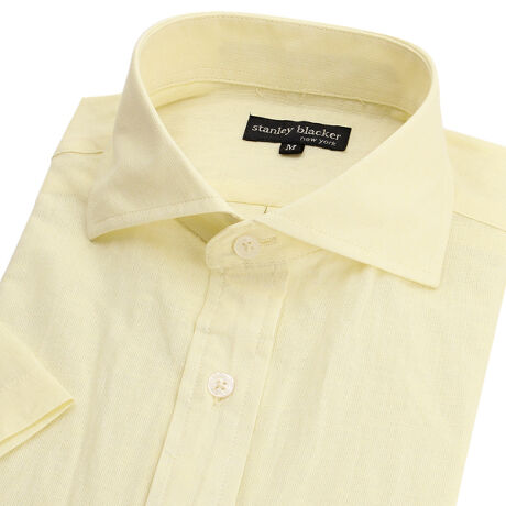 【stanley blacker】【半袖】カッタウェイシャツ イエロー 無地 コットン リネン混