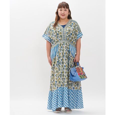 ◆ プリントが存在感たっぷりに揺れるロングワンピース (大きいサイズ)◆