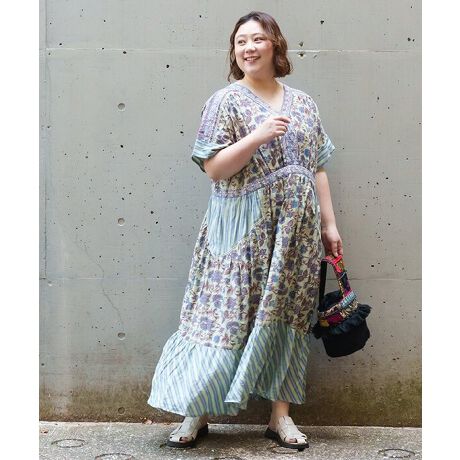 ◆ プリントが存在感たっぷりに揺れるロングワンピース (大きいサイズ)◆