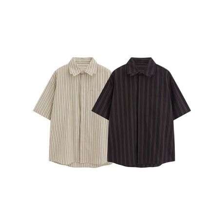 落ち着いた雰囲気のストライプオープンカラーシャツ。シンプルながらもストライプデザインがスタイルを引き締め、スタイリッシュな印象を与える一枚。