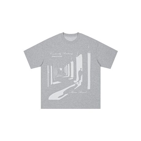 都会的な雰囲気を漂わせるグラフィックプリントTシャツ。モノトーンのアートデザインがスタイリッシュな印象を与え、シンプルながらも存在感のある一枚。