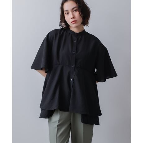 フレア袖は女性らしい華やかな雰囲気裾部分はレイヤードになっているので、さりげないデザインポイントで体型カバーもしてくれます。