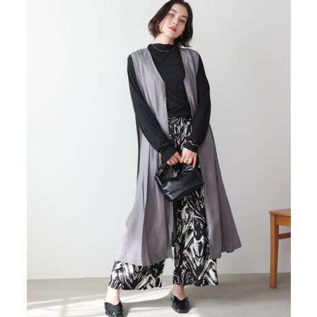 落ち感のあるキレイ目なポリエステル/ポリウレタンのデニムライク素材。スラプ調の表面感でよりリアルなデニムを表現しました。オフィスなどのОNシ-ンでも使えるカジュアル過ぎない大人お酒落な素材です。また、デニム特有のお洗濯の色落ちも心配不要!
