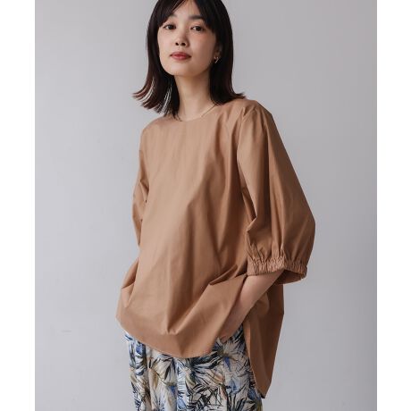 ボリュームのあるバルーンスリーブがスタイリングに華やかなムードをプラスするブラウス。前後で裾の長さが異なるデザインで、こなれた雰囲気を演出します。どんな着こなしにも取り入れやすいクルーネックがポイント◎