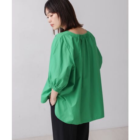 ボリュームのあるバルーンスリーブがスタイリングに華やかなムードをプラスするブラウス。前後で裾の長さが異なるデザインで、こなれた雰囲気を演出します。どんな着こなしにも取り入れやすいクルーネックがポイント◎