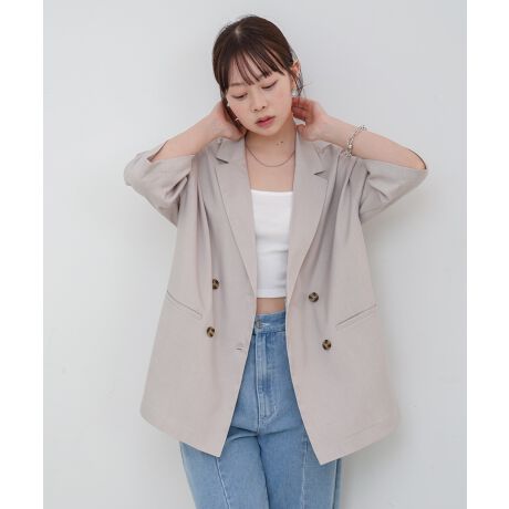 きちんと感と抜け感を両立した、ハーフスリーブのダブルテーラージャケット。ゆったりめのシルエットで肩の力を抜いた軽やかな着心地ながら、ジャケットの印象で上品に仕上がります。二の腕をしっかりカバーする袖丈で季節の変わり目や冷房対策にも活躍。