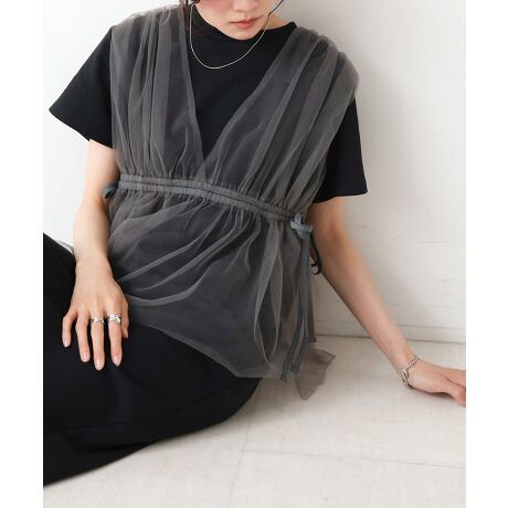 チュール生地は若干ハリがあり、ふわっとしたシルエットが保たれエアリー感があります。カットソー生地はこれからの時期に嬉しい吸湿性も期待できる綿の混紡です。