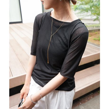 レーヨン混の滑らかな肌触りのカットソー素材は着ていてもストレスを感じさせない軽やかさ。程よいシアー感でレイヤードすることで色の濃淡も出るのでワントーンでもおしゃれに着こなすことができます。