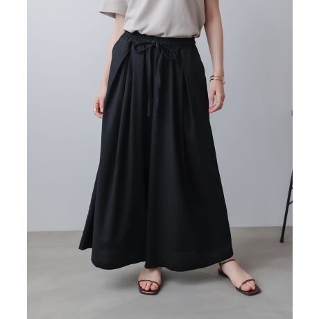 綿とリネンのブレンド生地で肌ざわりよく、まだ暑さの残る時期にも嬉しい素材感。ふわっと広がる、ゆったりワイドなシルエットで動きやすさも◎。ウエストタックが脚のシルエットも綺麗にカバーしてくれます。ウエストはゴム仕様で楽に着て頂けます。
