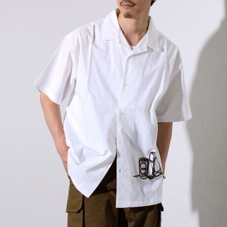 【GLOSTER/グロスター】綿ブロード ショートスリーブ カクテル刺繍 オープンカラーシャツ