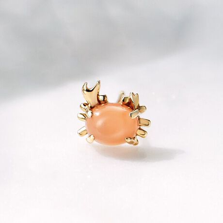 6月誕生石・かに座星座石とされている(オレンジ)ムーンストーンでカニの体を表現しました。ころんとした高さのあるカボションカットが愛らしいデザインです。