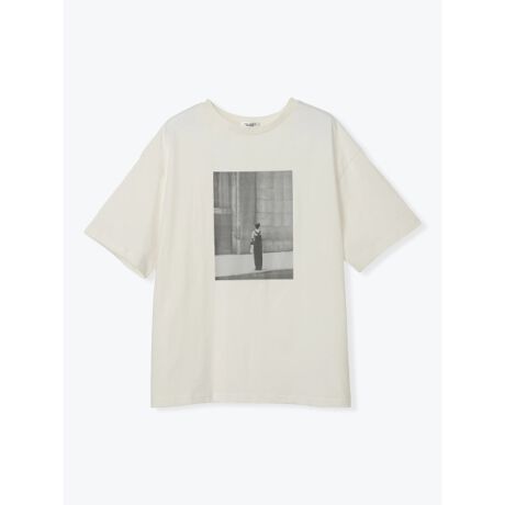 モノトーンの転写プリントをあしらった大人カジュアルなTシャツ