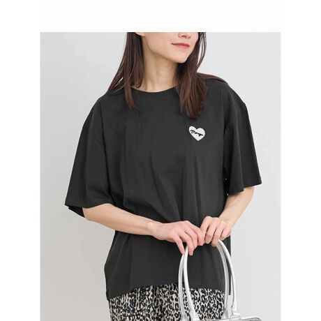 胸元に施されたハートワッペンがキュートなアクセントになるTシャツ